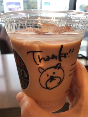 今日は帰りにカフェに寄ったらカップにくまちゃんを描いてくれました。ちょっと嬉しい。