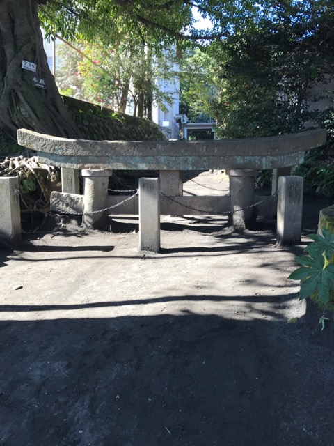火山灰に埋もれた鳥居(・Д・)に驚き、